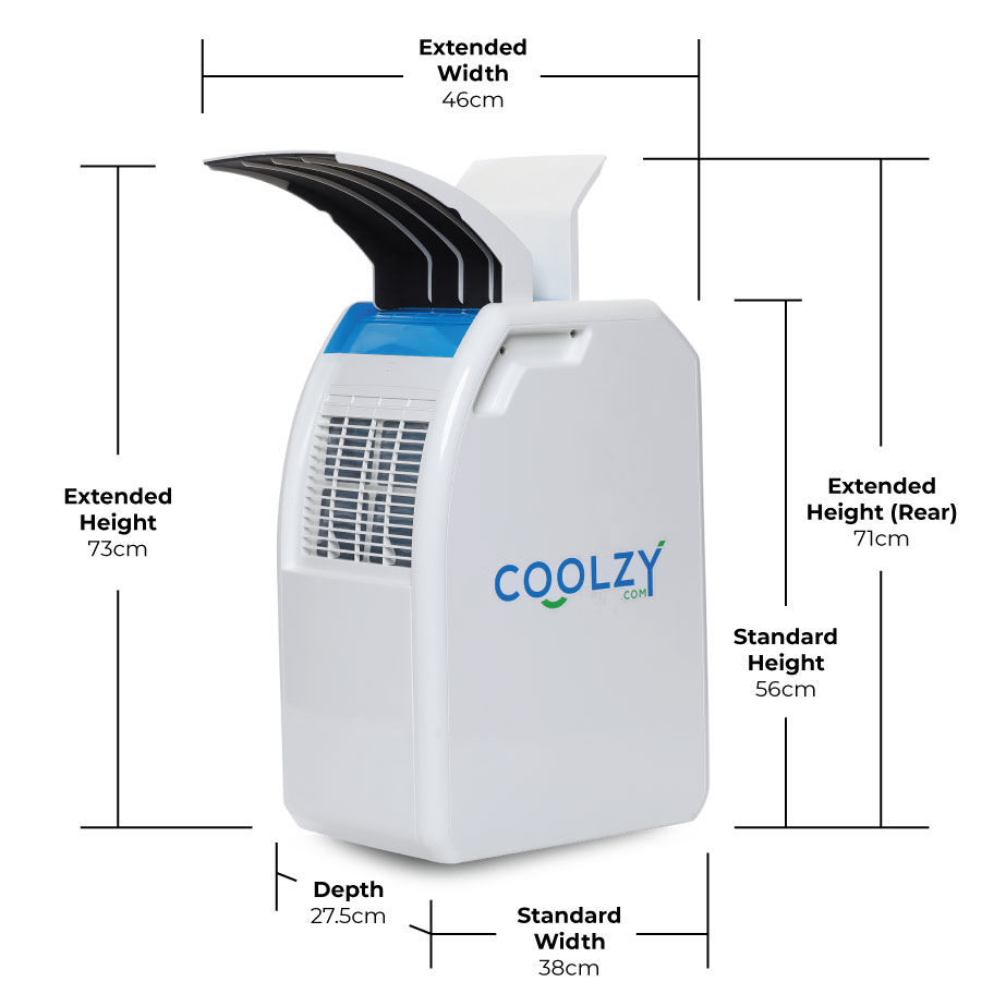 The Coolzy-Pro Portable Air Conditioner cools people, not rooms by providing a constant stream of cool refrigerated air from the front of the unit and a small amount of warm air from the rear of the unit. In large spaces, this warm air usually dissipates however in smaller rooms, the warm air needs to be vented by leaving a door or window open.